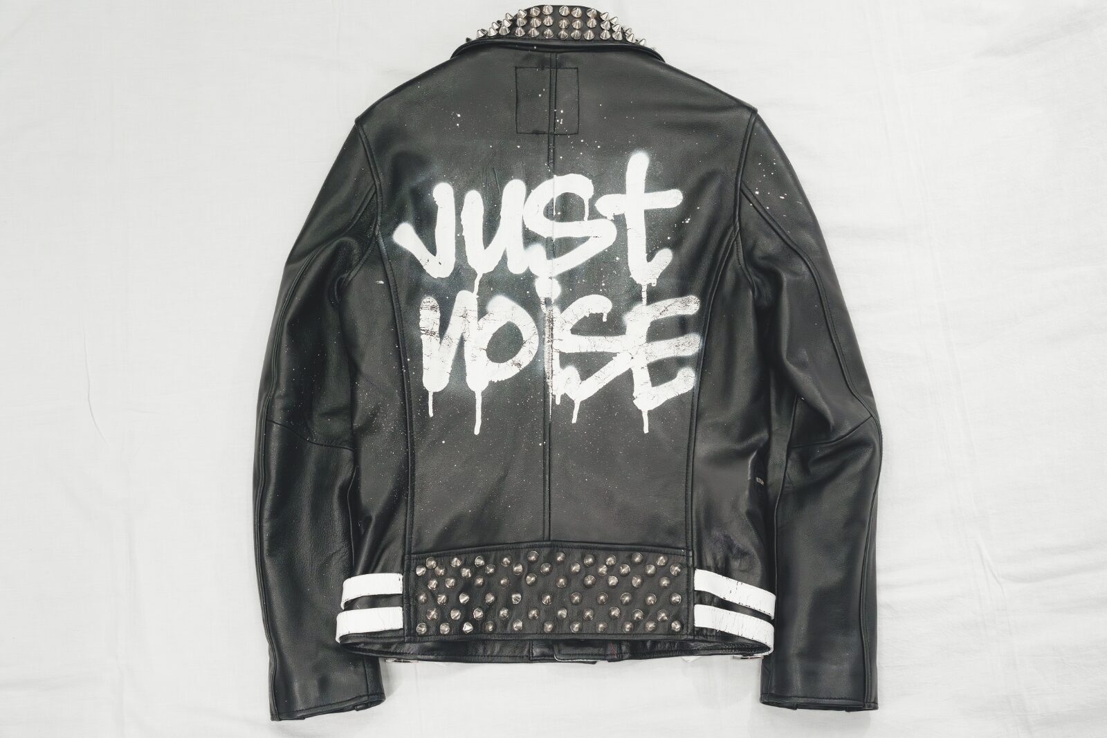 ーー次はハードなダブルライダースジャケットです。JUST NOISEというブランドです。