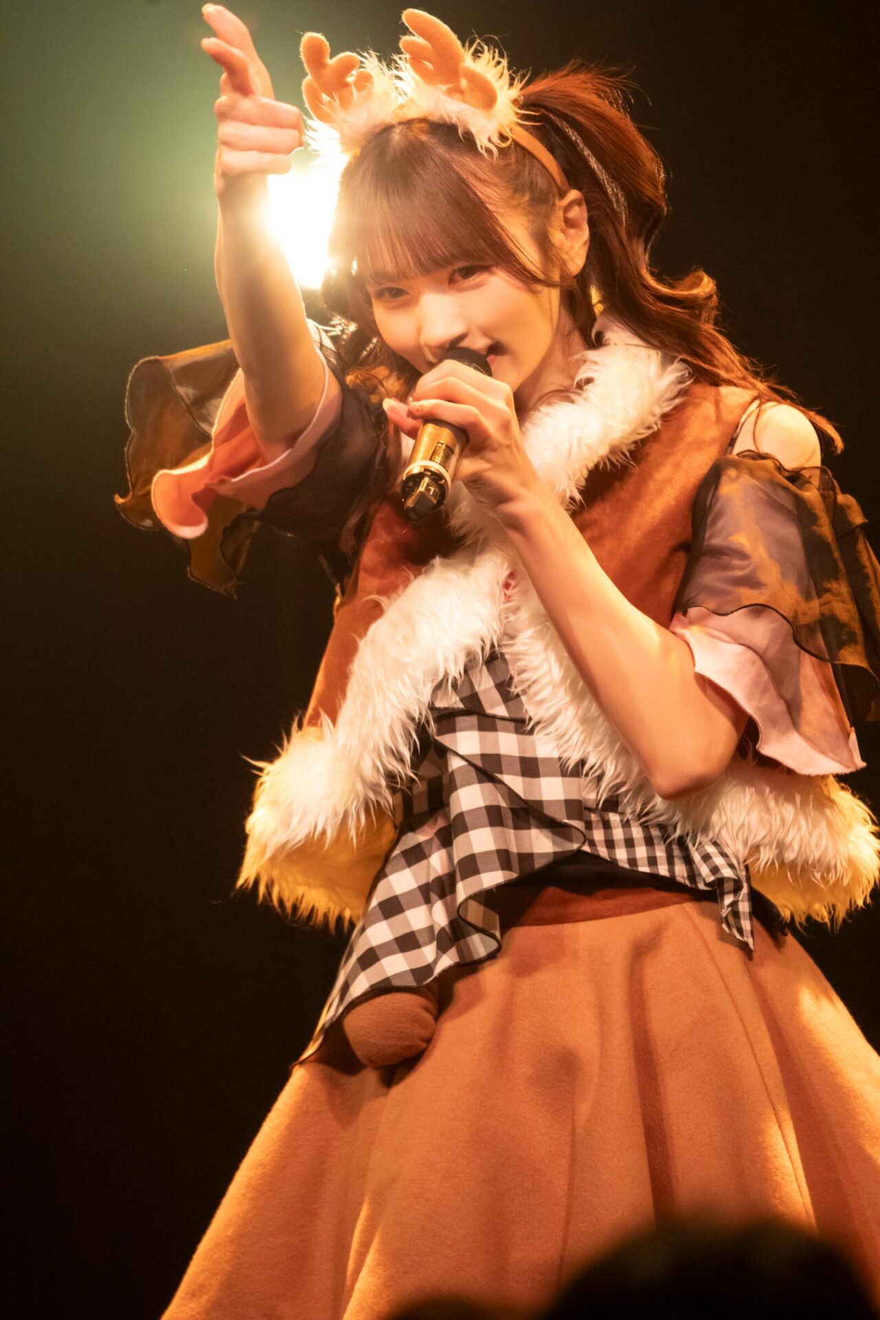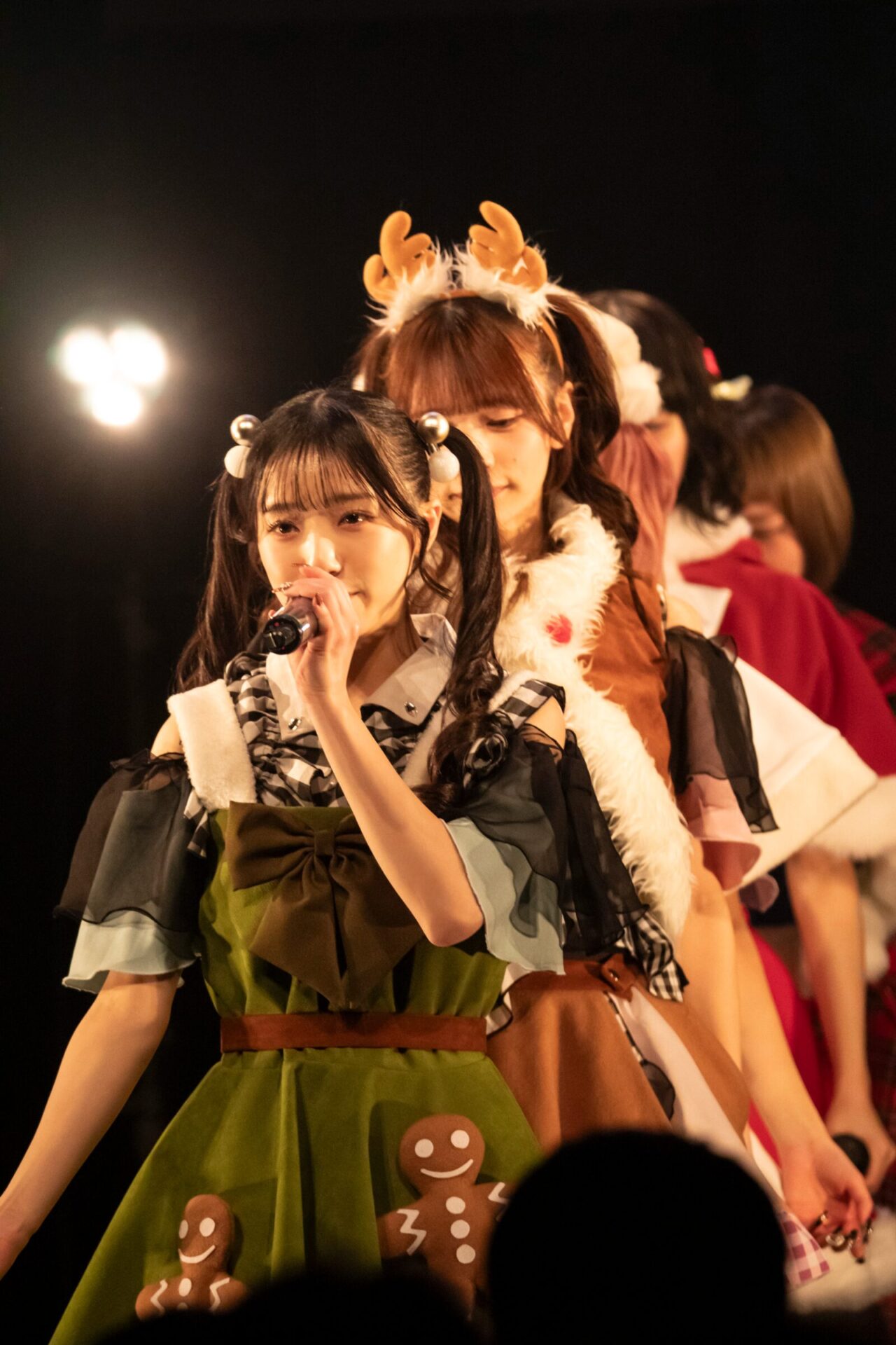 MCでは、本日の公演限定のメンバーリクエストを反映した衣装を紹介。キャ・ノンはサンタ、キラ・メイはトナカイ、ナルハワールドはクリスマスツリー、アイナスターは雪だるま、そしてチャンベイビーは”クリスマスプレゼント”がテーマとなっていることを伝え、衣装のポイントを解説した。