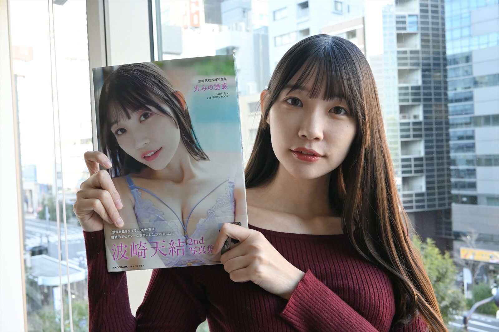 波崎天結(以下、波崎) 撮影中に思いついたワードになります。私は自身の売りがおしりになるので、おしりは出したい、攻めたいなっていう想いがありました。今回、2nd写真集ではおしりがすごく丸く映っていたので、全部含めて“丸み”っていう表現をしました。それに「誘惑」っていう言葉と繋げて色っぽく頑張りました。