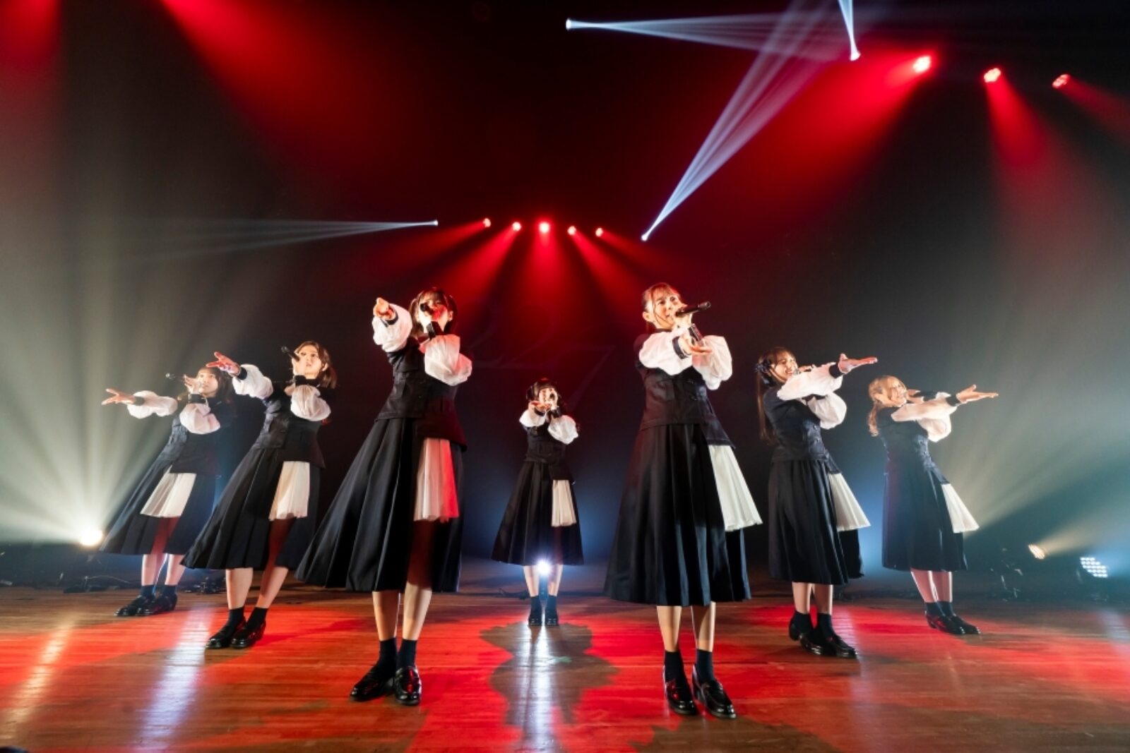 ここで、チェンジしたモノトーンの衣装が4月22日リリースの16thシングル「二つの道」の新衣装であることが伝えられると、3期生を加えた15人体制初となる新曲を、今回は貴重な先輩メンバー・7人体制でパフォーマンス。椎名からの説明にもあったように、4月スタートのアニメ『最強の王様、二度目の人生は何をする?』Season2のエンディングテーマであるこの曲は、冒険心を掻き立てるような、気持ちを鼓舞させてくれるようなピアノイントロから始まる壮大な楽曲だ。力のこもったパフォーマンスに、じっと見つめ聴き入っているファンの姿がとても印象的だった。