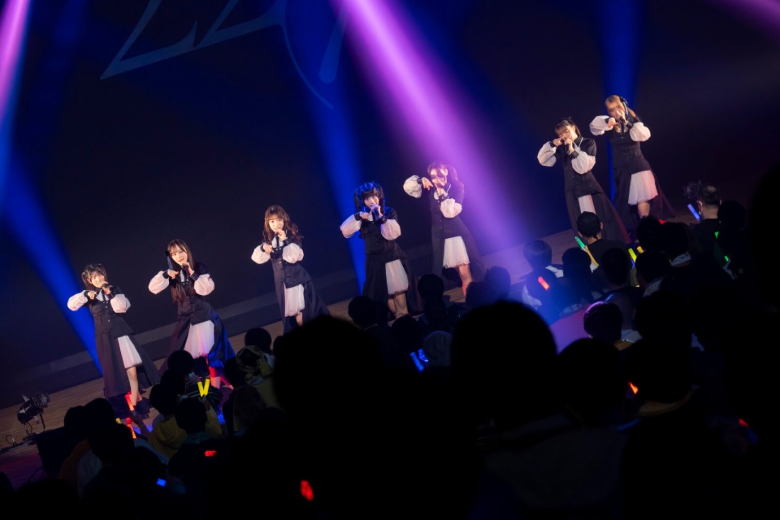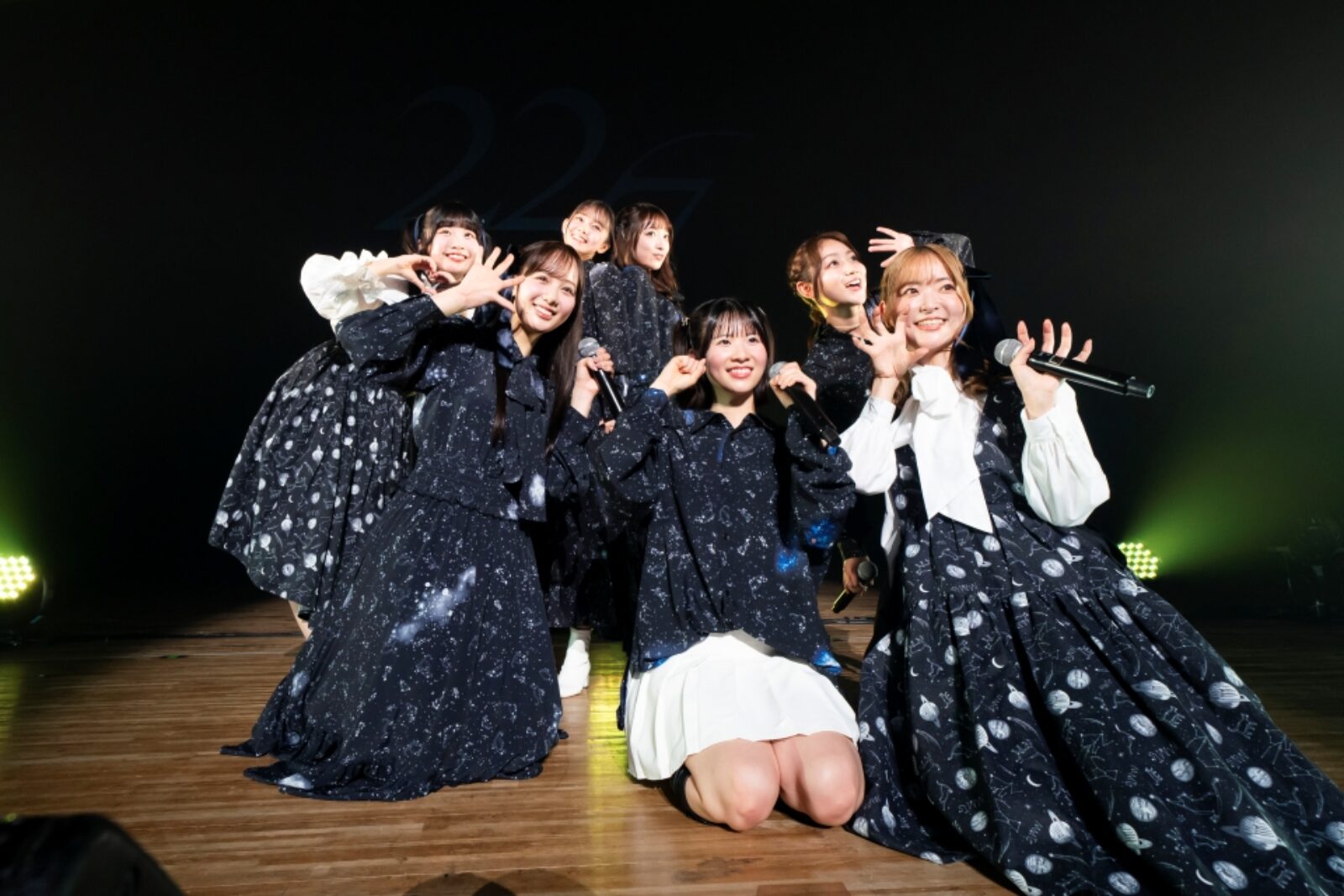 アンコールでは、宇宙や星空を想起させるような衣装にチェンジして登場。ファンと共に記念撮影を行うと、ここで初出しとなるライブ情報を解禁した。まずは、4月4日の東京国際フォーラム ホールCでのワンマンライブ「15」のソールドアウトを受けて、昼に追加公演を開催することを発表。さらに、5月24日には天城と河瀬を除く後輩メンバー5人による、グループ加入5周年記念ライブ「Fivesta(フィブスタ)」を今回のライブ会場の西新井文化ホールで開催することも発表。ナナニジとしては初となるカメコ席が設置されることが合わせて告げられると会場からは大きな歓声が上がった。さらに、嬉しいプレゼントとしてアンコールの楽曲は動画撮影可能に。プラネタリウムでのキャラクターライブ「22/7 Star Travelers」でもキーとなっている「僕のホロスコープ」と「君はMoon」という人気曲2曲を披露。ペンライトを揺らしてコールや声援を送る満員のファン。推し活に情熱を注ぎ込む尊い景色が広がる中、キャラクターライブも含めた「ジャパンフェスタ」での22/7のすべてのプログラムは幕を下ろした