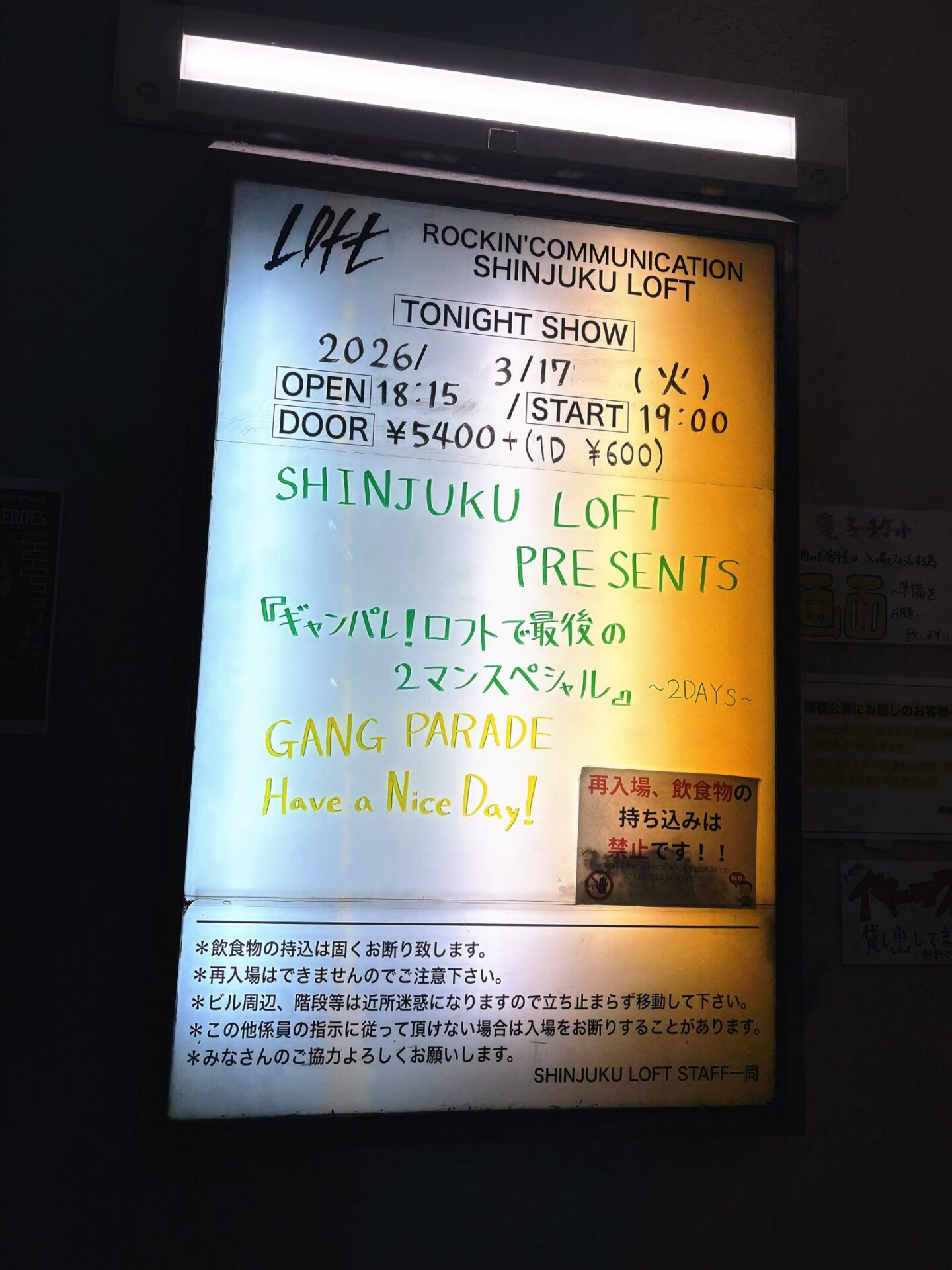 こんにちは。GANG PARADEのキャ・ノンです。今日は新宿ロフトで行われたSHINJUKU LOFT PRESENTSギャンパレ!ロフトで最後の2マンスペシャル!2DAYS、1日目のHave a Nice Day!さんとのツーマンライブの日のことを書いていこうと思います。